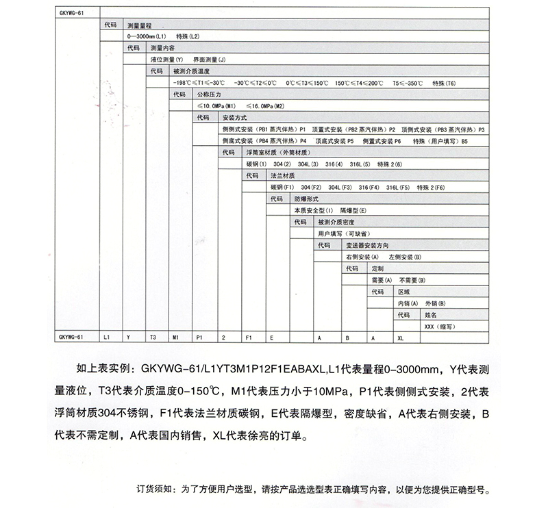 GKYWG-61電動(dòng)浮筒液位計(jì)是采用了國(guó)外技術(shù)及零部件研制組裝的新型液位測(cè)量?jī)x表,該儀表搭載了先進(jìn)微型計(jì)算機(jī)系統(tǒng),除了具有高準(zhǔn)確度、低漂移等優(yōu)點(diǎn)外,還可對(duì)測(cè)量過(guò)程的溫度和密度進(jìn)行自動(dòng)補(bǔ)償,同時(shí)可調(diào)整量程范圍,適合多種工況的液位界位測(cè)量。本產(chǎn)品具有防爆性,結(jié)構(gòu)簡(jiǎn)單,性能穩(wěn)定,安裝方便。可廣泛用于石油、化工、冶金、電力及鋼鐵行業(yè)。GKYWG-61型電動(dòng)浮筒液位計(jì)可用來(lái)測(cè)量液位、界位和密度,不但能輸出4~20mA的標(biāo)準(zhǔn)電流信號(hào),也能利用HART通訊協(xié)議隨時(shí)讀取,對(duì)過(guò)程操作當(dāng)中用戶所需要的信息又可在傳輸線的任意一點(diǎn)對(duì)其進(jìn)行調(diào)校。